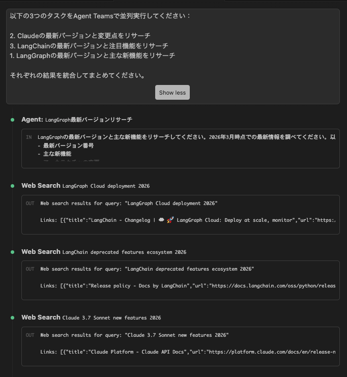 各Agentはそれぞれの調べ物をWeb検索で実施しています。