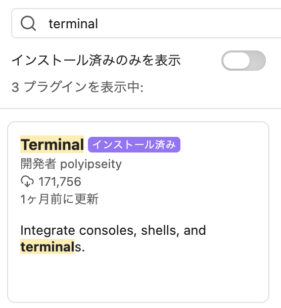 検索ボックスが出てきますのでTeminalと検索しインストールします。